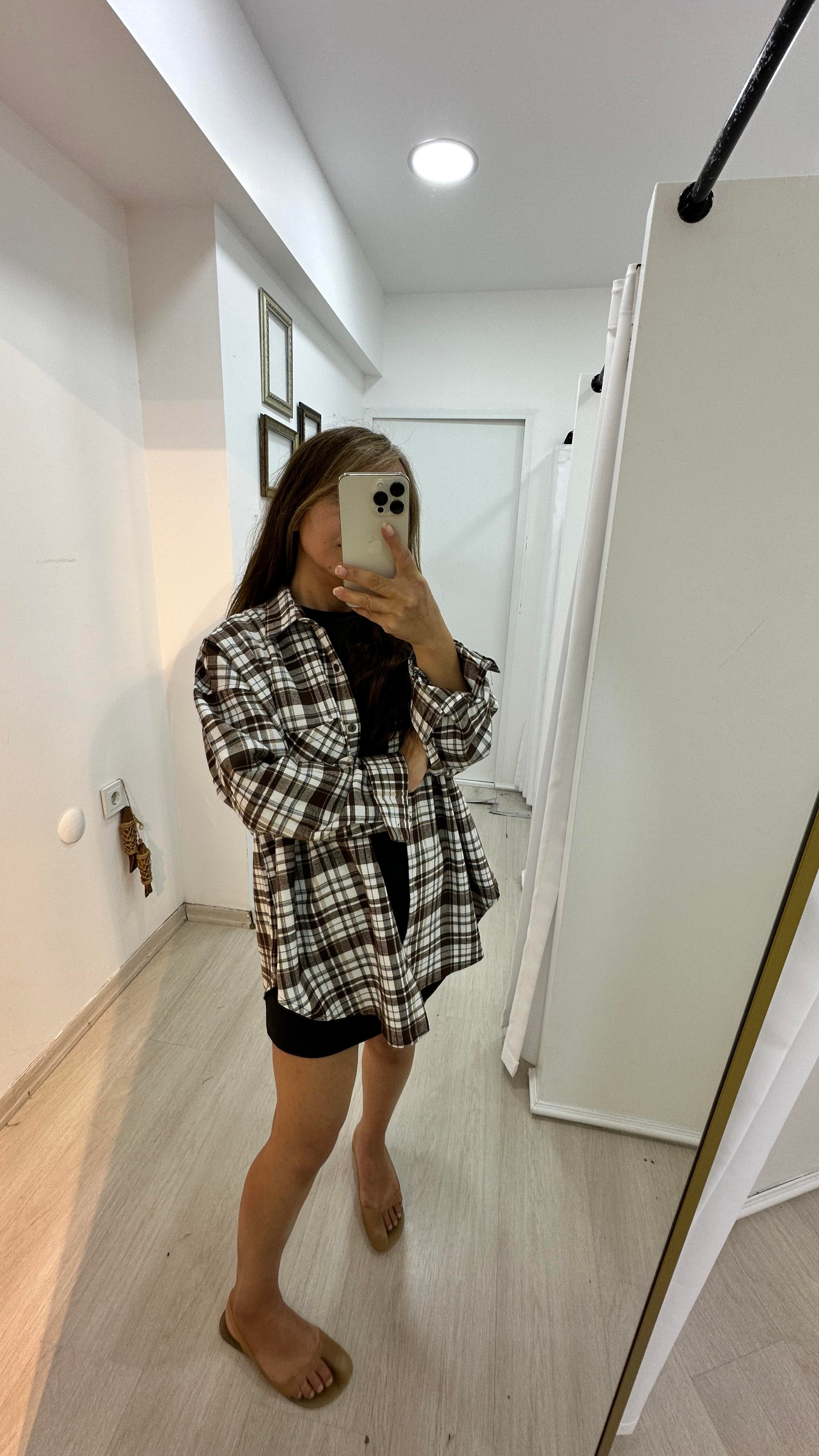 Ekose Gömlek - Kahve - BejGömlek2G07
