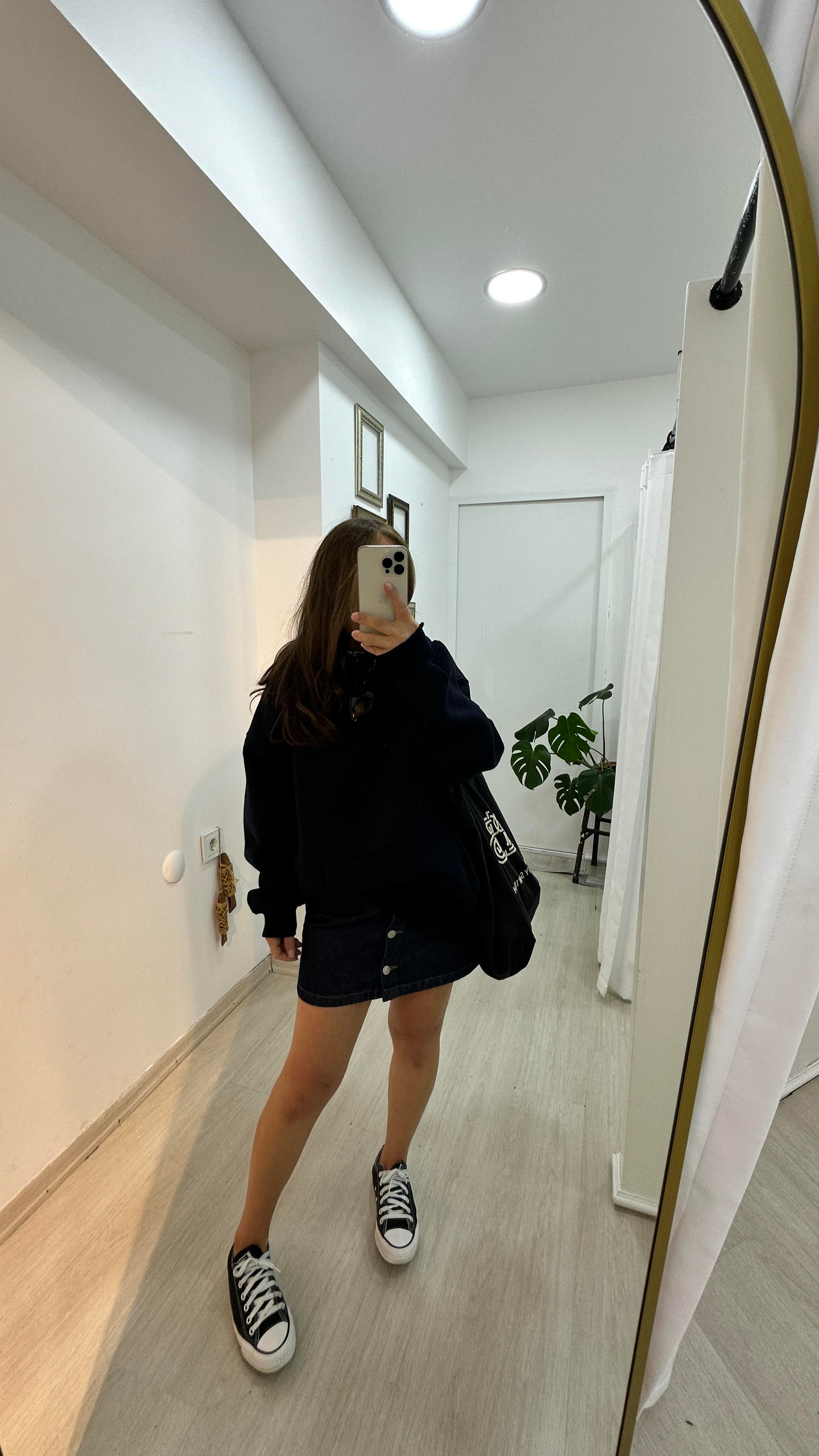 Oversize Kapüşonlu Cep Detaylı Sweatshirt - LacivertSweartshirt2S08