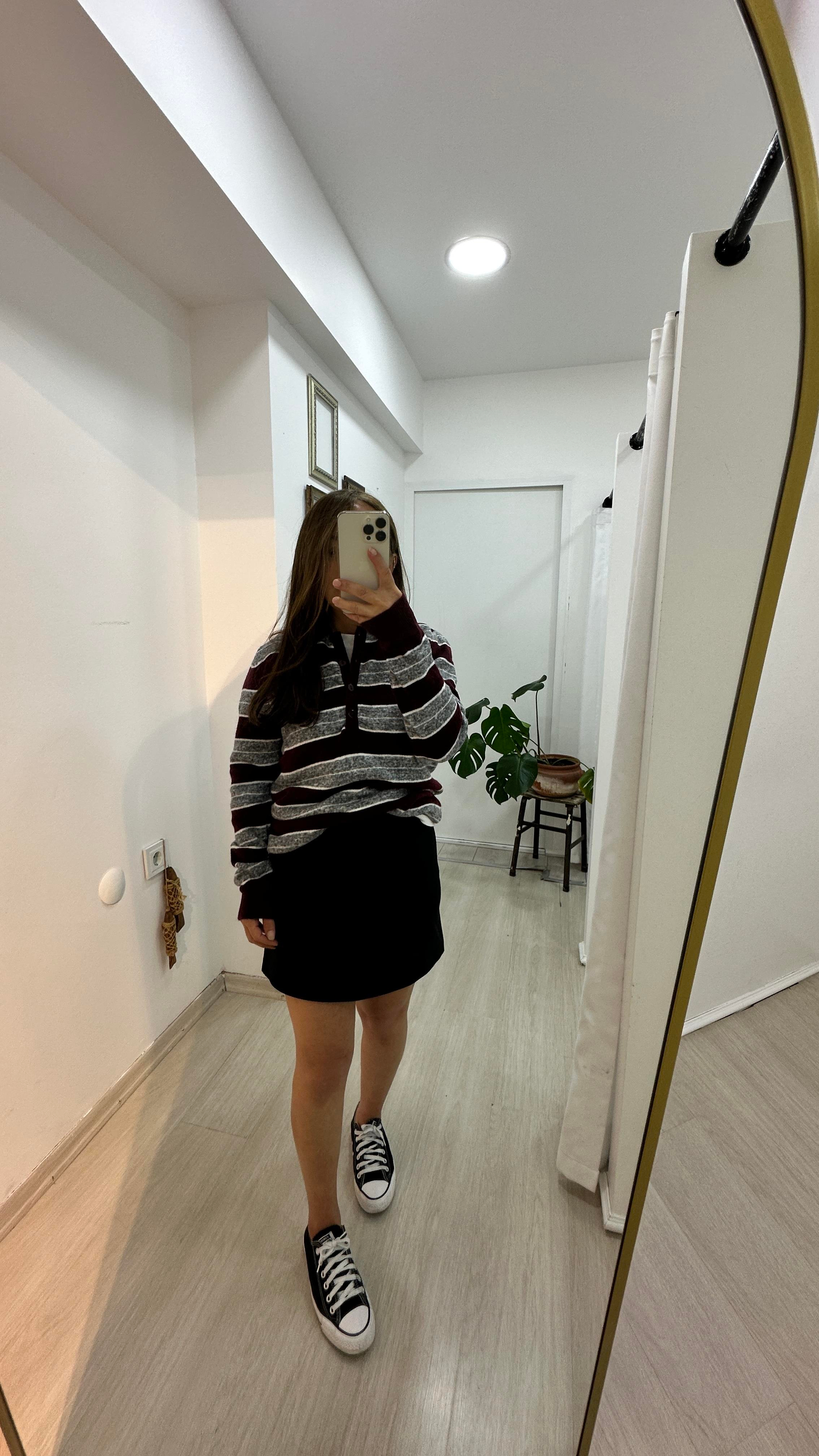 Polo Yaka Çizgili Triko - Gri-BordoTriko & Kazak2T10