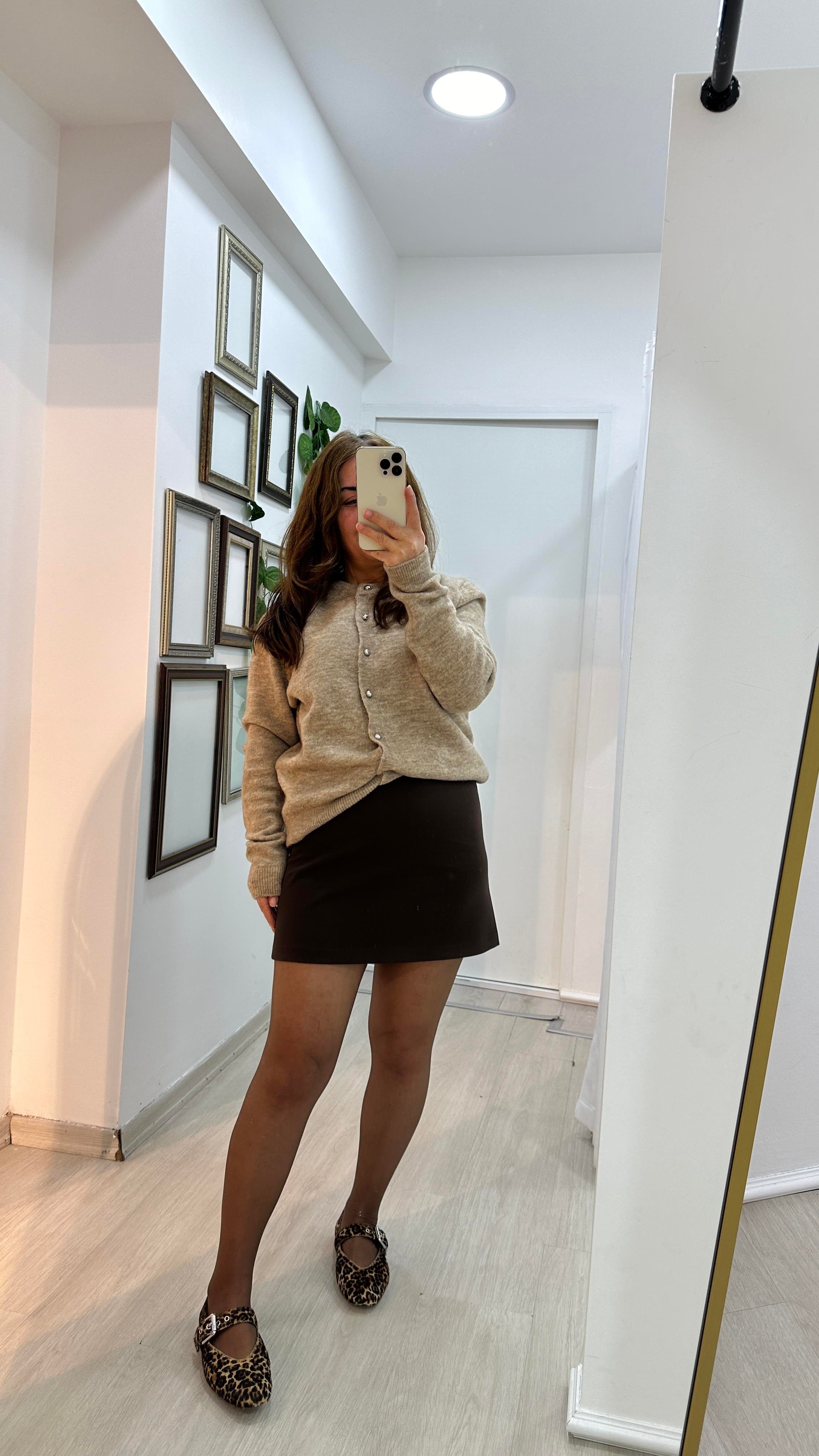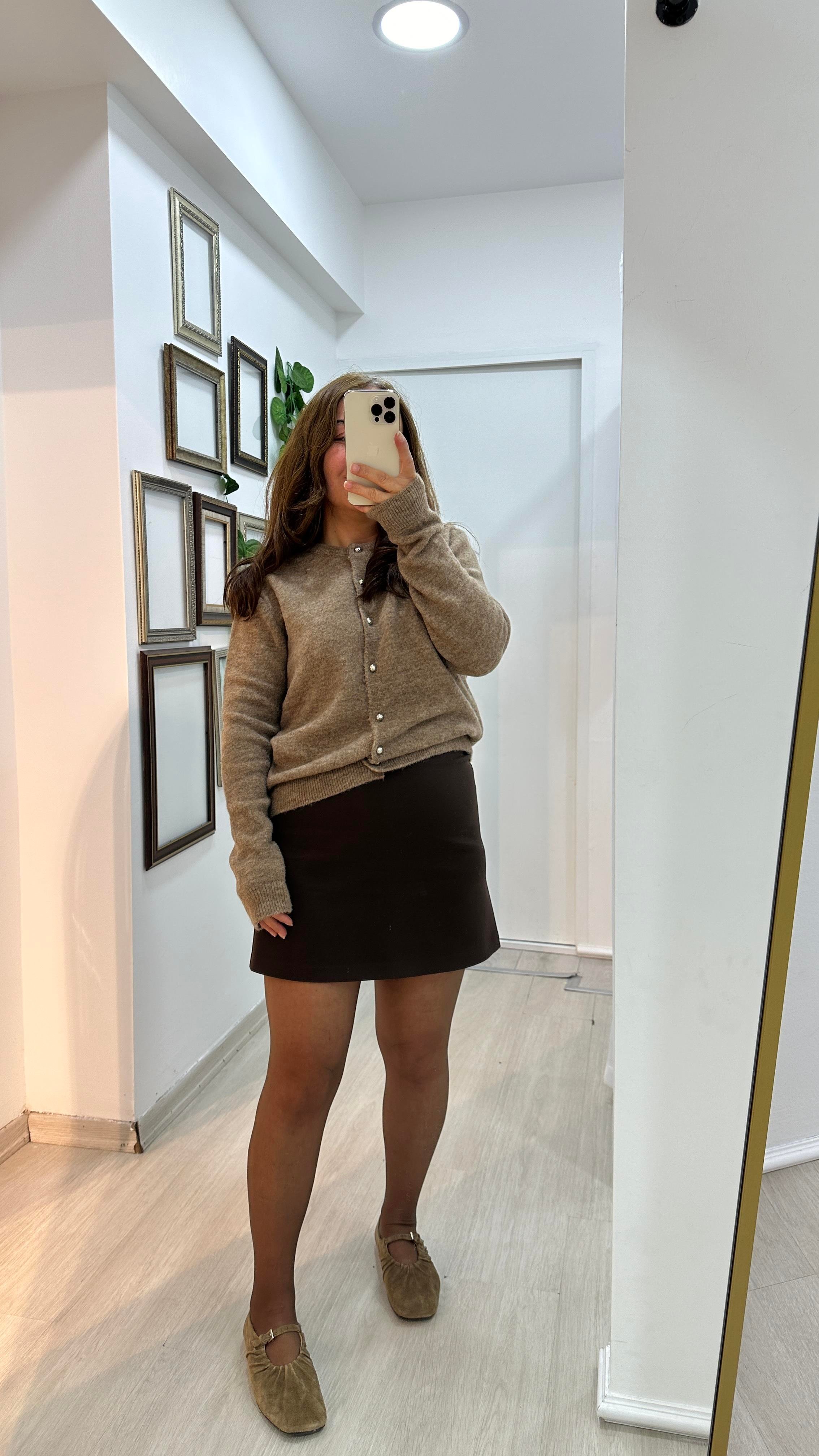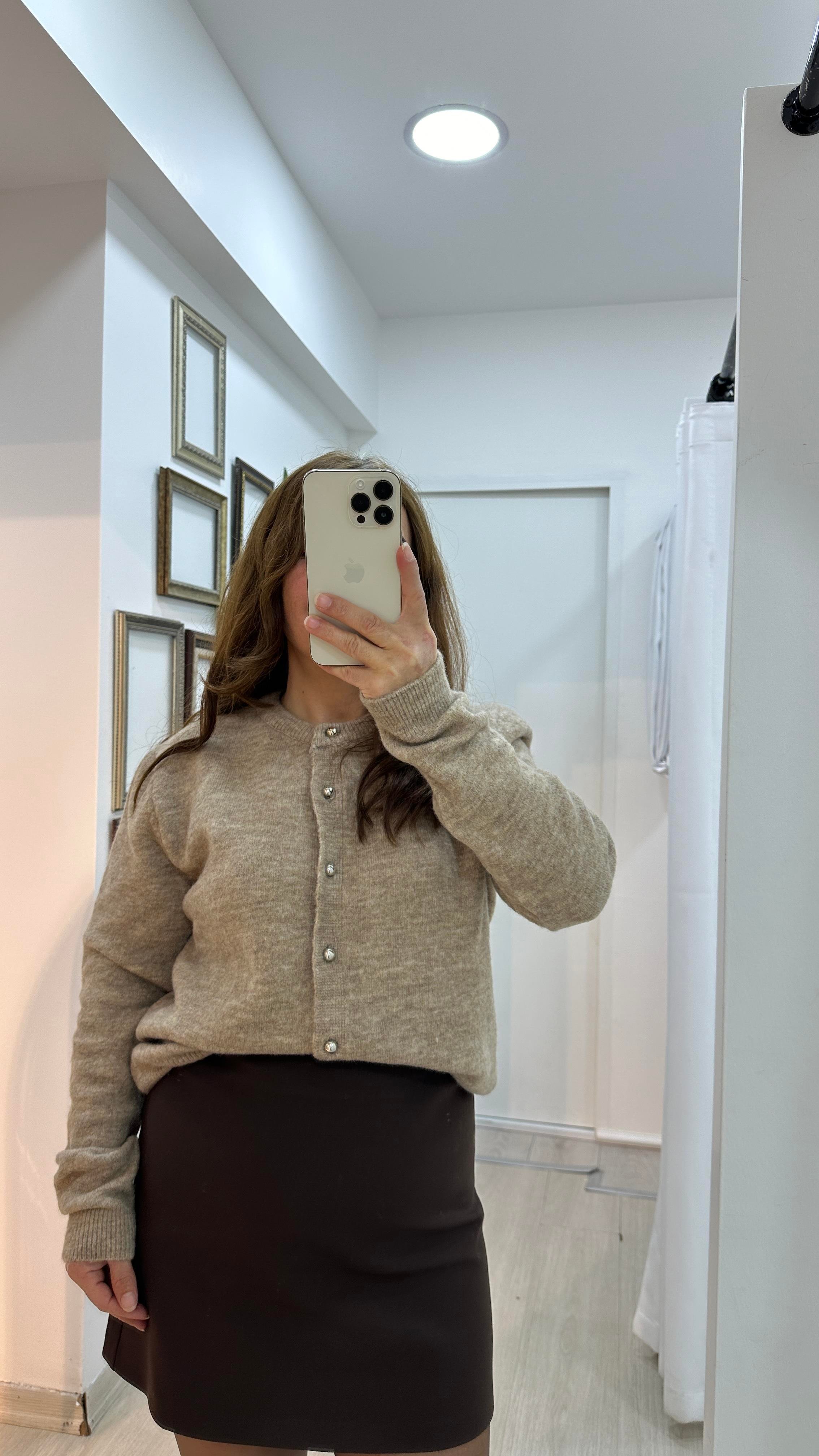 Bej Renk Düğme Detaylı Yumuşak Hırka (03-HK0003)